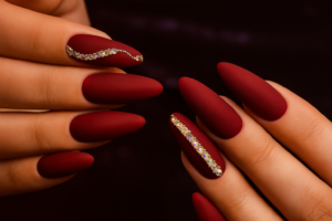 The Trend to Try: Hennadi Art. This is the one everyone asks for! We use super fine brushes with gold or ivory polish to create complex, lacy linework right over your rich red base. It’s literally a piece of art on your nail!